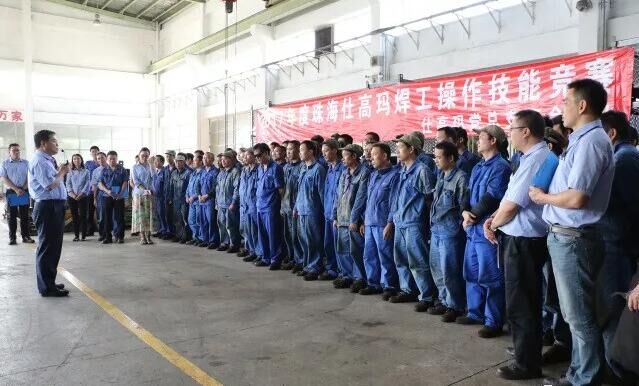 2017年10月26日,珠海仕高瑪公司組織的勞動(dòng)技能競(jìng)賽之仕高瑪、匯高2017年度焊工操作技能競(jìng)賽在仕高瑪冷制作車間拉開序幕,公司總經(jīng)理作賽前動(dòng)員并宣布比賽開始。